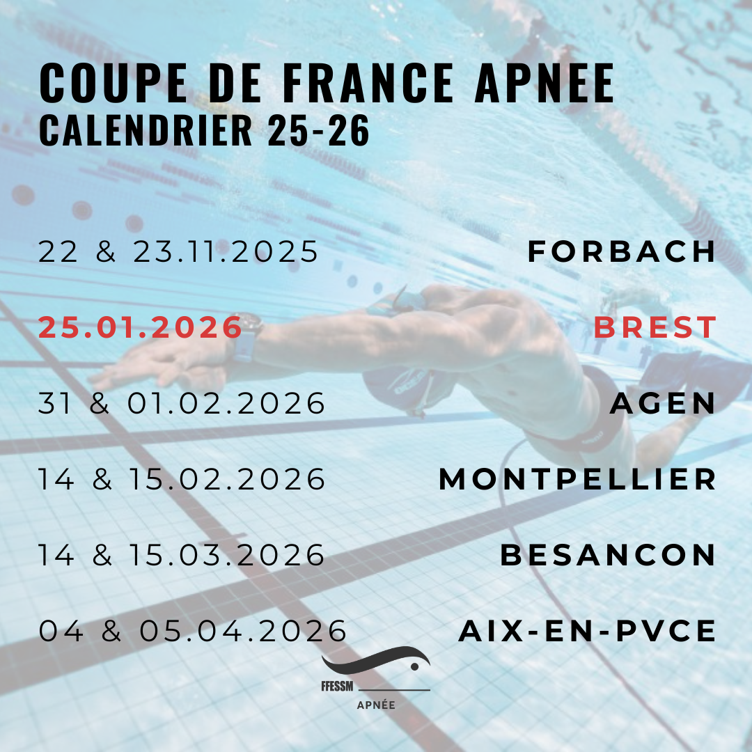 3è Manche de Coupe de France d'apnée à Agen (piscine Aquasud) 31 janvier et 1er février 2026